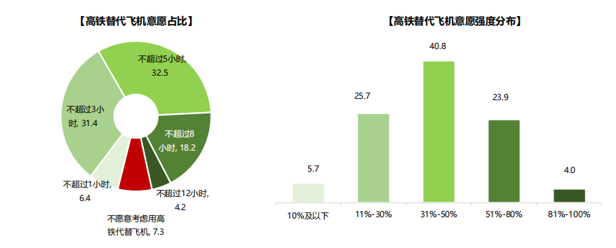 图1 高铁替代飞机意愿占比及强度分布(单位:%)
