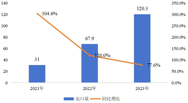图1 2021年-2023年中国新能源汽车出口情况(单位:万辆)