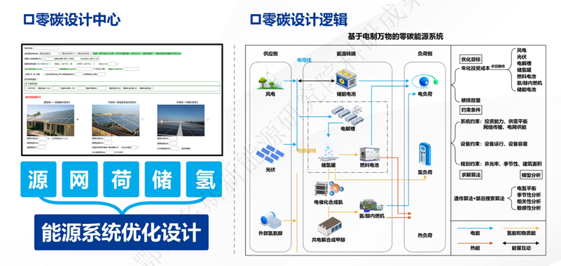 实现零碳能源微网需要多项核心技术支撑,涵盖新能源预测、构网储能、电氢融合、氨醇与新能源耦合、能量高效调度、负荷调控,以及如何通过氢-电-热多能融合实现零碳化。其中,能量预测和负荷管理是关键,用以匹配上游和下游的波动。微网系统方面最重要的是微网的设计、高中低频的协同控制,以及上层能源经济性调度等。针对此类问题,鄂尔多斯新能源研究院已成立零碳设计中心,专注于能源系统优化设计,通过对源网荷储氢不同场景的分析,提出基于电制万物的零碳能源系统架构,并在投资收益、碳排放、系统稳定和设备选型约束等多目标下进行优化。