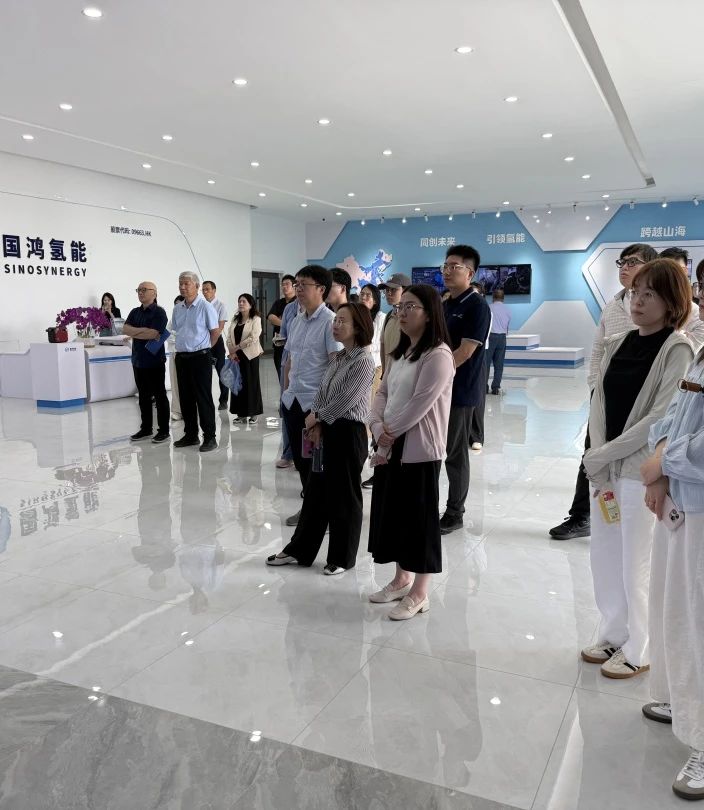 7月14日下午,走访团队首站来到国鸿氢能科技产业园,重点参观氢燃料电池重卡相关技术与产品。在产业园展厅内,团队了解到国鸿氢能的明星产品——鸿途H240氢能发动机系统,该系统采用多模块电堆设计理念,达到行业领先水平。据介绍,一辆配备该系统的49吨重卡行驶10万公里,可减碳120吨。专家们对此表示关注,围绕氢燃料电池系统的技术特点、减碳效能及在重卡领域的应用前景等展开交流。